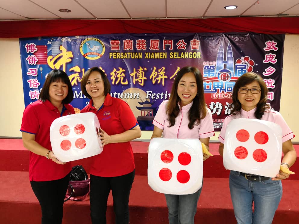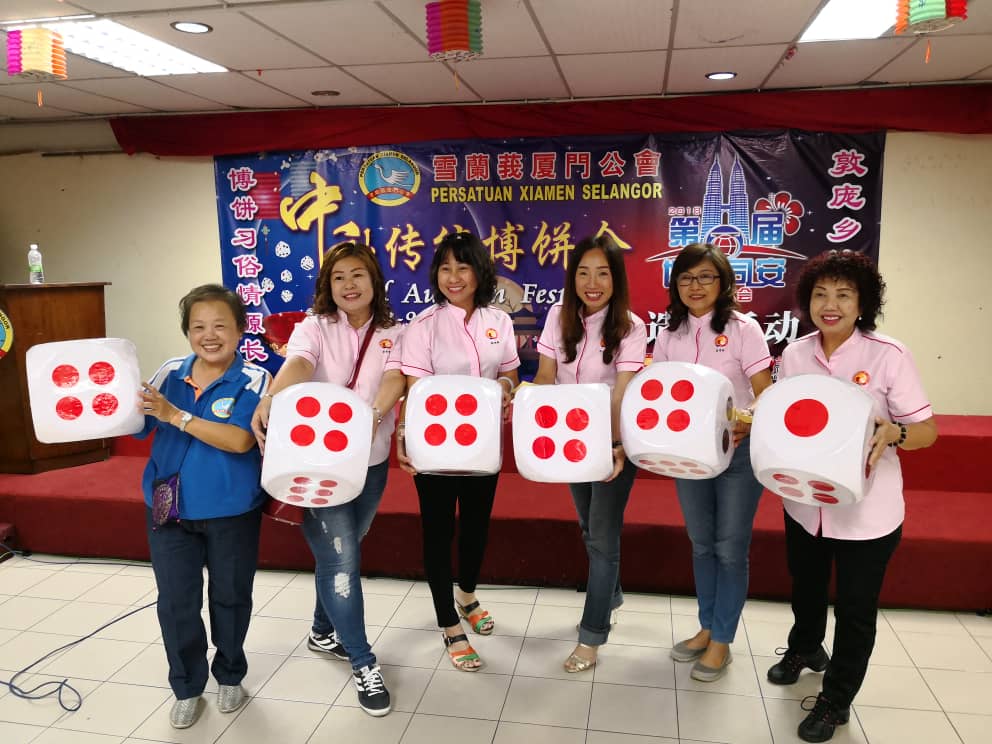 妇女组丢出骰子,放手“一搏”,以夺得最大的博饼